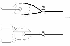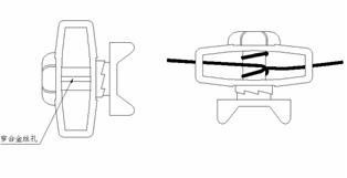 ???????? 中間收緊器是一直掛在前端圍欄上的,安裝合金絲時(shí),把合金絲從中間緊線器側(cè)面的圓孔穿入,再對(duì)準(zhǔn)并穿過(guò)其中間的中縫,最后通過(guò)另一側(cè)面的圓孔穿出。