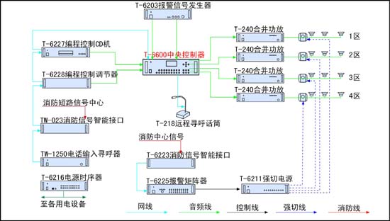 智能廣播控制中心(T-6600)---工廠公共廣播系統(tǒng)構(gòu)建圖